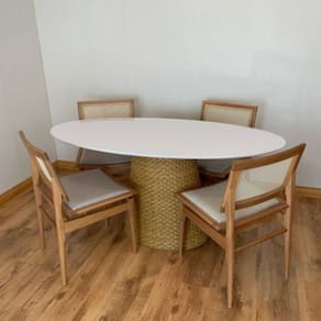 Mesa De Jantar Cone Oval 180x100 cm Tampo Laca Branca Base Fibra Natural