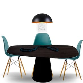 Dimensões:Altura: 75 cm Largura:198cm Profundidade:122 cmEstrutura Laminada em Madeira Natural Freijó Ebano , contra tampo em MDF 18 mm e um tampo de 198x122cm MDF Melamina em ébanoEssa mesa possui duas bases em formato cilindro oval, elas são revestidas em lâmina de madeira natural e acompanha um lindo tampo na cor freijó Claro em formato orgânico em MDF Melamina muito resistente e ideal para superfícies de apoio como tampo de mesa.