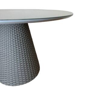 Mesa De Jantar Cone Redonda 130cm Tampo Laqueado Cinza + Vidro Base Corda Náutica Cinza