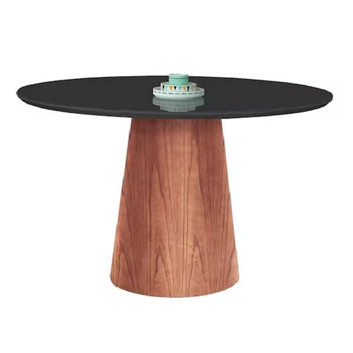 Mesa de Jantar Cone Tampo Laqueado Com Vidro 100cm Facilita Decor - Preto - Preto