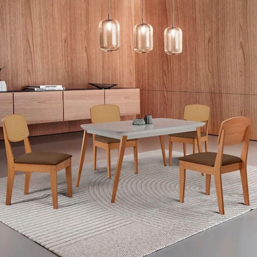Caracteristicas: Marca: Moderna Mobilia Modelo: Copper / Copper Premium Material: Base Madeira / Tampo MDF / Cadeira MDF Tampo: Canto Copo Com Vidro