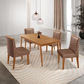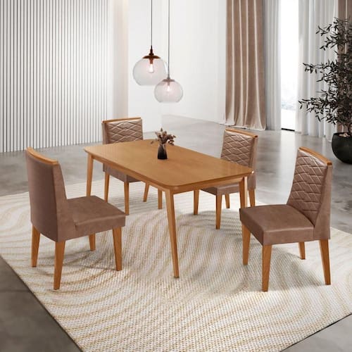 Mesa De Jantar Copper 120cm Tampo Mdf Com 4 Cadeiras Eloise Tork// Conjunto Sala de Jantar Mesa Copper e Cadeira Eloise A Mesa Copper e uma peca que traz elegancia e sofisticacao para qualquer ambiente. Sua base em madeira oferece uma estrutura resistente e duravel, enquanto o tampo em MDF e acabamento canto copo garante um visual refinado. Com design sofisticado e estrutura solida, ela complementa o ambiente com um toque natural e acolhedor.