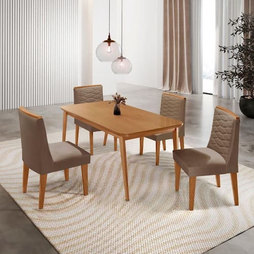 Mesa De Jantar Copper 120cm Tampo Mdf Com 4 Cadeiras Eloise Veludo Capuccino/naturalle/naturalle Conjunto Sala de Jantar Mesa Copper e Cadeira Eloise A Mesa Copper e uma peca que traz elegancia e sofisticacao para qualquer ambiente. Sua base em madeira oferece uma estrutura resistente e duravel, enquanto o tampo em MDF e acabamento canto copo garante um visual refinado. Com design sofisticado e estrutura solida, ela complementa o ambiente com um toque natural e acolhedor.