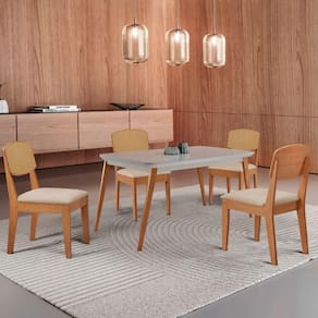 Mesa De Jantar Copper 120cm Tampo Mdf Vidro 4 Cadeiras Veludo Creme /off / /serig Off Conjunto Sala de Jantar Mesa Copper e Cadeira Copper Premium A Mesa Copper e uma peca que traz elegancia e sofisticacao para qualquer ambiente. Sua base em madeira oferece uma estrutura resistente e duravel, enquanto o tampo em MDF com vidro e acabamento canto copo garante um visual refinado. Com design sofisticado e estrutura solida, ela complementa o ambiente com um toque natural e acolhedor.