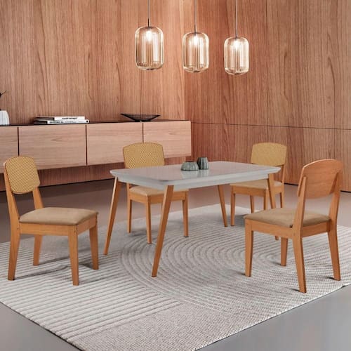 Mesa De Jantar Copper 120cm Tampo Mdf Vidro 4 Cadeiras Turim 07/nat/off/serig. Off Conjunto Sala de Jantar Mesa Copper e Cadeira Copper Premium A Mesa Copper e uma peca que traz elegancia e sofisticacao para qualquer ambiente. Sua base em madeira oferece uma estrutura resistente e duravel, enquanto o tampo em MDF com vidro e acabamento canto copo garante um visual refinado. Com design sofisticado e estrutura solida, ela complementa o ambiente com um toque natural e acolhedor.