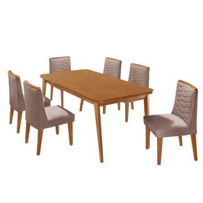 Mesa De Jantar Copper 180cm Tampo Mdf Com 6 Cadeiras Eloise Linho Capuccino// Conjunto Sala de Jantar Mesa Copper e Cadeira Eloise A Mesa Copper e uma peca que traz elegancia e sofisticacao para qualquer ambiente. Sua base em madeira oferece uma estrutura resistente e duravel, enquanto o tampo em MDF e acabamento canto copo garante um visual refinado. Com design sofisticado e estrutura solida, ela complementa o ambiente com um toque natural e acolhedor.