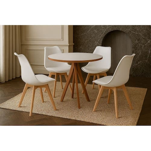 Este conjunto combina o charme da madeira com a elegância do tampo branco, criando um visual moderno e acolhedor. Perfeita para cozinhas, salas de jantar, varandas gourmet ou ambientes comerciais, ela é a escolha certa para quem busca qualidade, durabilidade e design.