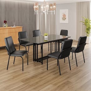 Conjunto De Mesa 6 Cadeiras Vidro Preto Fosco