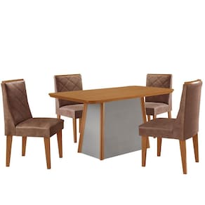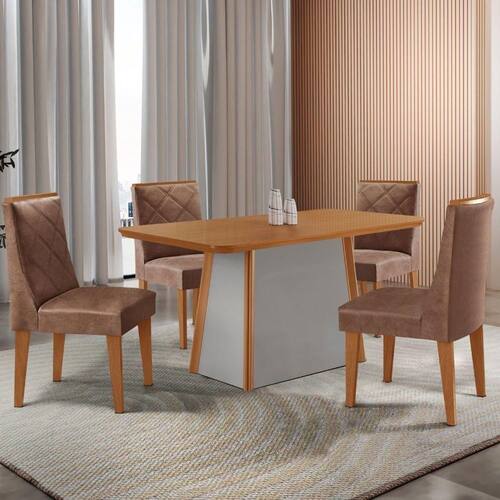 A Mesa Diane, produzida em 100 MDF, e a escolha ideal para transformar refeicoes em experiencias memoraveis. Seu design elegante combina perfeitamente estilo e resistencia, garantindo durabilidade sem abrir mao da estetica. A base robusta, com extremidades em acabamento Naturalle, e um verdadeiro destaque visual, agregando charme e sofisticacao ao ambiente. O modelo perfeito para quem busca um design clean e sofisticado, trazendo leveza ao ambiente. As Cadeiras Isadora sao totalmente estofadas, oferecendo conforto e um toque de charme com seus elegantes bordados.