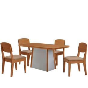 Mesa de Jantar Diane 120cm Tampo MDF Laminado com 4 Cadeiras Copper Moderna Mobília - Bege