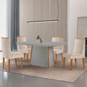A Mesa Diane, produzida em 100 MDF com Tampo Canto Copo e Vidro, e a escolha ideal para transformar refeicoes em experiencias memoraveis. Seu design elegante combina perfeitamente estilo e resistencia, garantindo durabilidade sem abrir mao da estetica. A base robusta, com extremidades em acabamento Naturalle, e um verdadeiro destaque visual, agregando charme e sofisticacao ao ambiente. As Cadeiras Lisboa completam o conjunto com conforto e praticidade. Totalmente estofadas, proporcionam uma experiencia agradavel ao sentar, enquanto suas alcas facilitam o manuseio no dia a dia, tornando o ambiente ainda mais funcional.