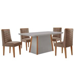 Mesa De Jantar Diane 120cm Tampo Mdf Vidro 4 Cadeiras Safira Veludo Capuccino Off White Serigrafia
