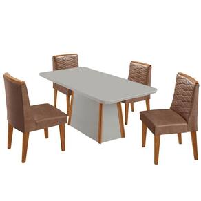 A Mesa Diane, produzida em 100 MDF com tampo Canto Copo e Vidro, e a escolha ideal para transformar refeicoes em experiencias memoraveis. Seu design elegante combina perfeitamente estilo e resistencia, garantindo durabilidade sem abrir mao da estetica. A base robusta, com extremidades em acabamento Naturalle, e um verdadeiro destaque visual, agregando charme e sofisticacao ao ambiente. Para complementar, as Cadeiras Eloise MDF oferecem um toque de conforto. Totalmente estofadas, elas se destacam pelos bordados delicados e acabamentos sofisticados, ideais para compor ambientes modernos e elegantes.