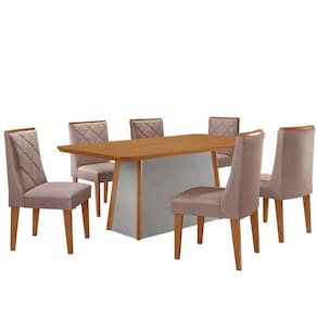 A Mesa Diane, produzida em 100 MDF, e a escolha ideal para transformar refeicoes em experiencias memoraveis. Seu design elegante combina perfeitamente estilo e resistencia, garantindo durabilidade sem abrir mao da estetica. A base robusta, com extremidades em acabamento Naturalle, e um verdadeiro destaque visual, agregando charme e sofisticacao ao ambiente. O modelo perfeito para quem busca um design clean e sofisticado, trazendo leveza ao ambiente. As Cadeiras Isadora sao totalmente estofadas, oferecendo conforto e um toque de charme com seus elegantes bordados.