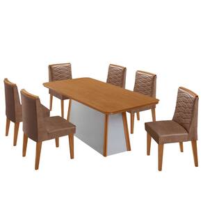Mesa de Jantar Diane 180cm Tampo MDF Laminado com 6 Cadeiras Eloise Moderna Mobília - Marrom Escuro