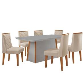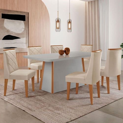 Mesa De Jantar Diane 180cm Tampo Mdf Vidro 6 Cadeiras Isadora Moderna Veludo Creme Off Serig