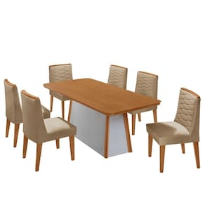 A Mesa Diane, produzida em 100 MDF, e a escolha ideal para transformar refeicoes em experiencias memoraveis. Seu design elegante combina perfeitamente estilo e resistencia, garantindo durabilidade sem abrir mao da estetica. A base robusta, com extremidades em acabamento Naturalle, e um verdadeiro destaque visual, agregando charme e sofisticacao ao ambiente. Para complementar, as Cadeiras Eloise MDF oferecem um toque de conforto. Totalmente estofadas, elas se destacam pelos bordados delicados e acabamentos sofisticados, ideais para compor ambientes modernos e elegantes.