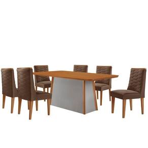Mesa De Jantar Diane 6 Cadeiras Safira Moderna Veludo Marrom - Branco