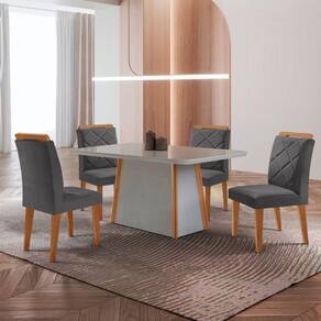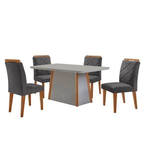 Mesa De Jantar Diane E 4 Cadeiras Melissa Moderna Mo... Veludo Grafite/off /nat/serig. Off Com Vidro - Cinza