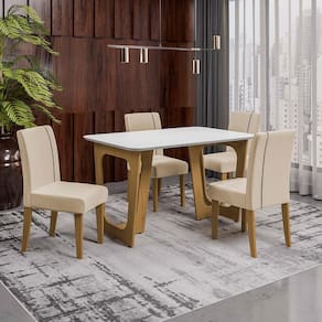 Móveis de alta qualidade fazem toda a diferença na nossa casa. A Mesa de Jantar Dobuê Áustria e suas 4 cadeiras são prova disso, afinal, apresentam alta durabilidade e têm um design bem arrojado. A combinação de cores mais clean, aliado ao formato moderno, tornam esse conjunto de sala de jantar um diferencial que vai valorizar muito a sua cozinha!