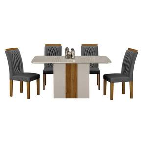 Mesa de Jantar Doha 120x80 Off White Decor Off com 4 Cadeiras Freijó Joli Chumbo Leifer Móveis