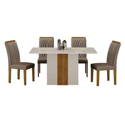 Mesa de Jantar Doha 120x80 Reto Off White Decor Off com 4 Cadeiras Freijó Joli Camurça Leifer Móveis