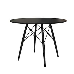 Mesa de Jantar Eames Eiffel Preta 90cm Base Madeira Maciça Preta - Preto