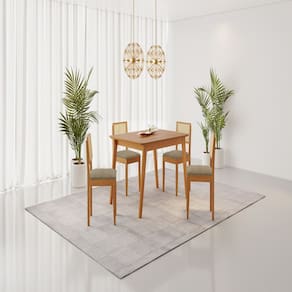 Produzida com estrutura de qualidade e tampo laminado em cinamomo, a mesa se destaca pela beleza natural da lâmina de madeira, que proporciona um acabamento sofisticado, fácil de harmonizar com diferentes estilos de decoração.