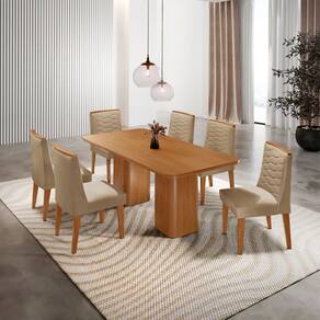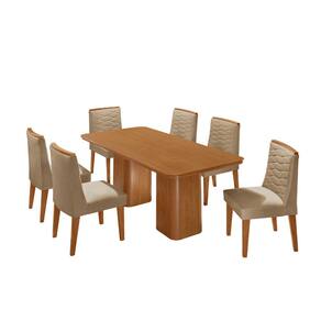 Mesa de Jantar Eloise 180cm Tampo MDF Laminado com 6 Cadeiras Eloise Moderna Mobília - Bege