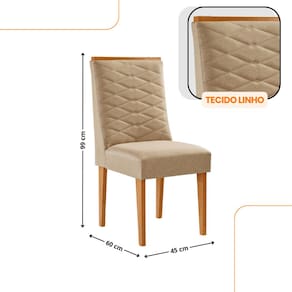 A mesa se adapta com facilidade a qualquer estilo de decoração, enquanto as cadeiras oferecem um toque de luxo e conforto incomparáveis, com assentos e encostos estofados e detalhes bordados.