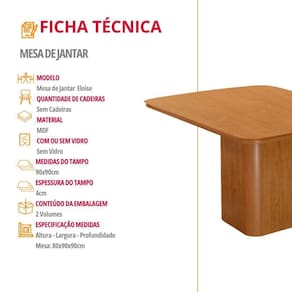 Conteudo da Embalagem: 01 Mesa de Jantar Eloise