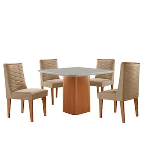 Mesa de Jantar Eloise 90cm Tampo MDF Vidro com 4 Cadeiras Safira Moderna Mobília - Bege Claro