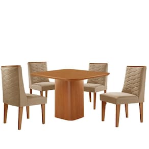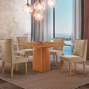 Mesa De Jantar Eloise 90cm Tampo Mdf 4 Cadeiras Moderna Turim 07/ Conjunto Sala de Jantar Mesa Eloise e Cadeira Safira A Mesa Eloise e uma peca de design sofisticado, com tampo em MDF Canto Copo, que adiciona elegancia e modernidade ao ambiente. Seu grande destaque esta nas bases com formato de torres, que trazem um visual marcante. As Cadeiras Safira sao totalmente estofadas, oferecendo conforto e um toque de charme com seus elegantes bordados na parte frontal e traseira. Os detalhes sofisticados valorizam ainda mais seu visual, tornando-a perfeita para ambientes modernos e elegantes. As alcas facilitam o manuseio, tornando o dia a dia mais pratico ao movimentar as cadeiras.