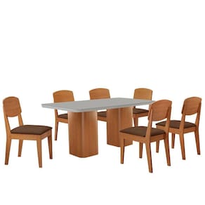Mesa De Jantar Eloise 180cm Tampo Mdf 6 Cadeiras Moderna Veludo Marrom/nat/off/serig. Off Conjunto Sala de Jantar Mesa Eloise e Cadeira Copper A Mesa Eloise e uma peca de design sofisticado, com tampo em MDF Vidro canto copo, que adiciona elegancia e modernidade ao ambiente. Seu grande destaque esta nas bases com formato de torres, que trazem um visual marcante. A Cadeira Copper combina design contemporaneo e conforto, com encosto em MDF moldado que oferece suporte ergonomico ideal. Seu estofado acolhedor garante um assento confortavel, enquanto o acabamento refinado e detalhes sofisticados valorizam seu visual, tornando-a perfeita para ambientes modernos e elegantes.