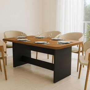 Mesa De Jantar Grande 160cm 6 Lugares Para Cozinha E Salas de Estar - Preto | Marrom