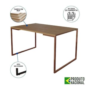 Mesa De Jantar Industrial Base Ferro Cobre Tampo 137x90 AmêndoaA mesa de jantar é um dos poucos móveis que efetivamente reúne a família para saborear um bom prato ao lado das pessoas que mais ama. E para garantir que o seu ambiente fique impecável, conte com a Mesa De Jantar Industrial. O modelo busca inspiração no estilo industrial, mas, ao mesmo tempo, abre um leque de possibilidades na hora de colocar a criatividade em prática e fazer as melhores harmonizações para a sua sala de jantar ou cozinha. As laterais vazadas e a sua forma reta em evidência conferem sofisticação ao cômodo e você ainda pode combiná-la com as outras peças da Linha Industrial para conquistar um visual completo.Tipo: Mesa de Jantar RetangularModelo: IndustrialCor Base: CobreCor Tampo: AmêndoaMedidas:Altura: 78cmLargura: 137cmComprimento: 90cmATENÇÃOIMAGENS MERAMENTE ILUSTRATIVAS REALIZADO EDIÇÃO, PODENDO HAVER UMA PEQUENA VARIAÇÃO DE COR DEPENDENDO DE CADA TELA OU MONITOR.Mesa de Jantar Industrial Base Ferro Cobre Tampo 137x90 AmÃndoa