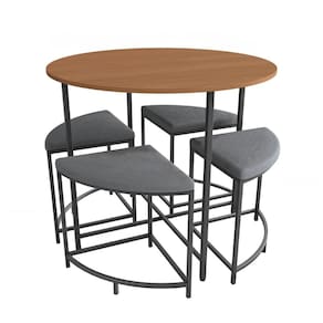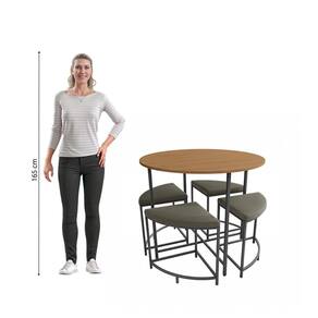 Para a cozinha ou área de lazer, a Mesa com 4 bancos LI038 da Linha Industrial é sempre a melhor opção. Prática e muito funcional, ela se encaixa em diversos ambientes, além de ser fácil de transportar. Produzida em estrutura metálica resistente, pintada com tinta epóxi na cor preto fosco, o que garante maior durabilidade contra a umidade, a mesa conta com tampo redondo, em chapa MDP de 15mm e pintura touch na cor canela, com a textura dos veios da madeira. Uma combinação moderna e funcional, ideal para quem não abre mão de estilo e beleza em cada momento. Já os bancos, com 48cm de altura, em formato triangular, também em estrutura metálica, contam com assento estofado, recoberto com tecido suede cinza titânio. O destaque fica para o encaixe, que lembra uma pizza, otimizando espaço e ainda, proporcionando um design único ao seu ambiente. Com pés reguláveis, a mesa e os bancos se ajustam a todos os tipos de piso, garantindo estabilidade e segurança, além de um acabamento perfeito.