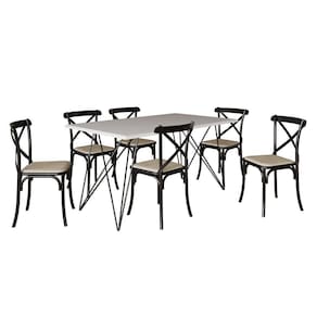 Mesa De Jantar Industrial Com 6 Cadeiras Katrina Preto Trama Premium Branco 150 CmA sua cozinha ou sala de jantar estará completa com esse maravilhoso conjunto para realizar as grandes as refeições e reuniões em família. E se você busca móveis com design contemporâneo, acompanhado de muita qualidade material e combinação de cores clássica, o modelo Trama é para você!Tipo: Conjunto de Mesa e CadeirasModelo: TramaCor Mesa: BrancoCor Cadeira: Preto Medidas Mesa:Altura: 76cmLargura: 150cmComprimento: 90cmMedidas Cadeira:Altura: 90cmLargura: 48cmProfundidade: 46cmATENÇÃOIMAGENS MERAMENTE ILUSTRATIVAS REALIZADO EDIÇÃO, PODENDO HAVER UMA PEQUENA VARIAÇÃO DE COR DEPENDENDO DE CADA TELA OU MONITOR.Mesa de Jantar Industrial com 6 Cadeiras Katrina Preto Trama Premium Branco 150 Cm