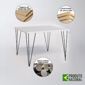 Mesa de jantar industrial quadrada clips branca 90cm de ferro pretoA mesa clips é a escolha ideal para deixar sua casa muito mais bonita e renovada. Essa mesa tem em sua estrutura materiais de altíssima qualidade, que proporciona muito mais resistência, mesmo com o passar dos anos. Ela tem formato quadrado e possui espaço para 4 lugares, o que é ideal para um jantar em família. A mesa é versátil e combina com vários tipos de decoração, o que dá mais praticidade em casa.CaracteristicasTipo: mesaModelo: clipsCor: brancoBase: ferro na cor pretaDimensões do produtoAltura: 75cmLargura: 90cmProfundidade: 90cm Obs: imagens meramente ilustrativaMesa de Jantar Industrial Quadrada Clips Branca 90cm de Ferro Preto
