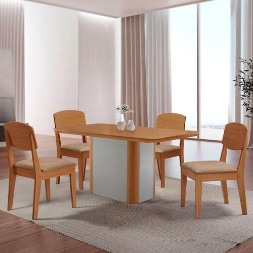 Mesa De Jantar Isadora 120cm Tampo Mdf Laminado Turim 07 Off White Sala de Jantar Isadora com Cadeira Copper A mesa Isadora, com Canto Copo Laminado, garante seguranca e durabilidade, enquanto sua base deslumbrante, com detalhe especial na sua angulacao arredondada Naturalle. A Cadeira Copper complementa o conjunto com um design contemporaneo e extremamente confortavel. Seu encosto em MDF moldado oferece suporte ergonomico ideal, enquanto o estofado acolhedor garante uma experiencia de uso agradavel. O acabamento refinado e os detalhes sofisticados elevam o visual da peca, tornando-a perfeita para compor ambientes modernos e elegantes.