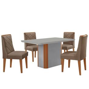 A mesa, com tampo Canto Copo e Vidro, garantem segurança e durabilidade, enquanto sua base deslumbrante, com detalhe especial na sua angulação arredondada Naturalle, transforma este conjunto em uma verdadeira peça de destaque na sua sala de jantar!