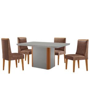 Mesa de Jantar Isadora 120cm Tampo MDF Vidro com 4 Cadeiras Lisboa - Marrom