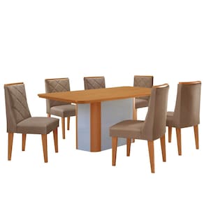 Mesa de Jantar Isadora 180cm Tampo MDF Laminado Canto Copo com 6 Cadeiras Isadora Moderna Mobília - Marrom
