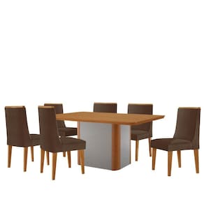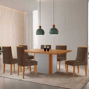 Mesa De Jantar Isadora 180cm Tampo Mdf Laminado Veludo Marrom Off White Sala de Jantar Isadora com Cadeira Lisboa A mesa Isadora, com tampo laminado e canto copo, garante seguranca e durabilidade, enquanto sua base deslumbrante, com detalhe especial na sua angulacao arredondada Naturalle, transforma este conjunto em uma verdadeira peca de destaque na sua sala de jantar!