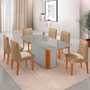 Mesa De Jantar Isadora 180cm Tampo Mdf Vidro Com 6 Cadeiras Turim 07 Serig Off