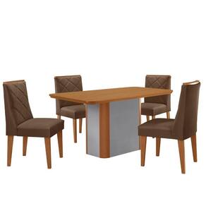 A mesa, com tampo laminado e canto copo, garantem seguranca e durabilidade, enquanto sua base deslumbrante, com detalhe especial na sua angulacao arredondada naturalle, transforma este conjunto em uma verdadeira peca de destaque na sua sala de jantar!