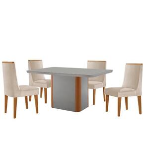 Mesa De Jantar Isadora 4 Cadeiras Veludo Creme Off White. - Branco