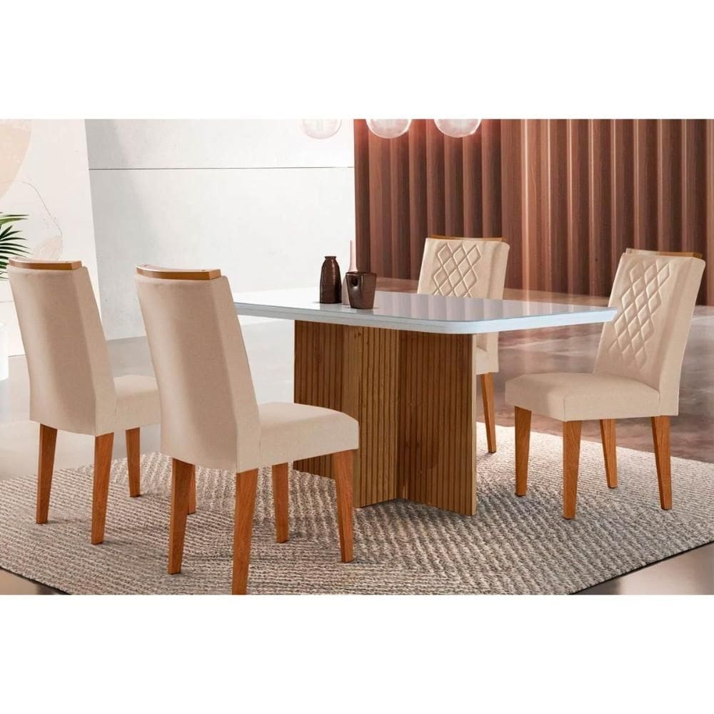 mesa de jantar jade 4 lugares off white com vidro pes oblongos rv moveis