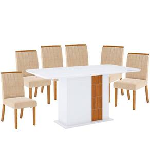 Mesa de Jantar Jein 160 cm Tampo Arredondado com Vidro Branco HP Nature Flex e 6 Cadeiras Méri Linho – Henn