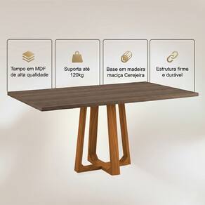 PRINCIPAIS BENEFÍCIOS Ideal para até 6 lugares com conforto Design moderno e sofisticado Tampo Freijó com visual natural elegante Base em madeira maciça mais resistente Excelente para salas médias e amplas